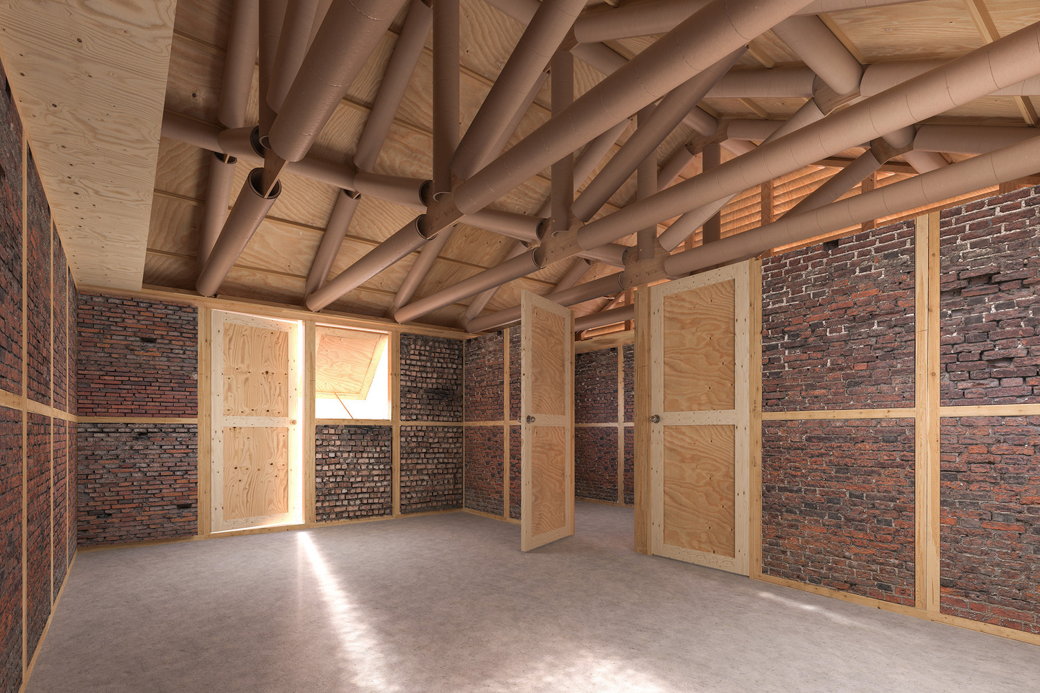 Arkitekti japonez Shigeru Ban është angazhuar në projekte për strehimore urgjente në lokacione të ndryshme nëpër botë. Ai ka qenë duke eksploruar përdorimin e kartonit si një material ndërtimi që nga viti 1986 kur filloi të testojë struktura të përkohshme dhe gjysmë të përhershme me tuba kartoni. Që atëherë, hulumtimi i tij e ka çuar atë të hartojë pavione, shkolla, strehimore urgjente dhe struktura të tjera të bëra nga ky material. Arkitekti kryen teste të performancës laboratorike dhe vërtetoi se tubat prej kartoni mund të përballojnë 10 megapascals (MPa) kur i nënshtrohen shtypjes, dhe 15 MPa kur i nënshtrohen lakimit, shkruan ArchDaily.