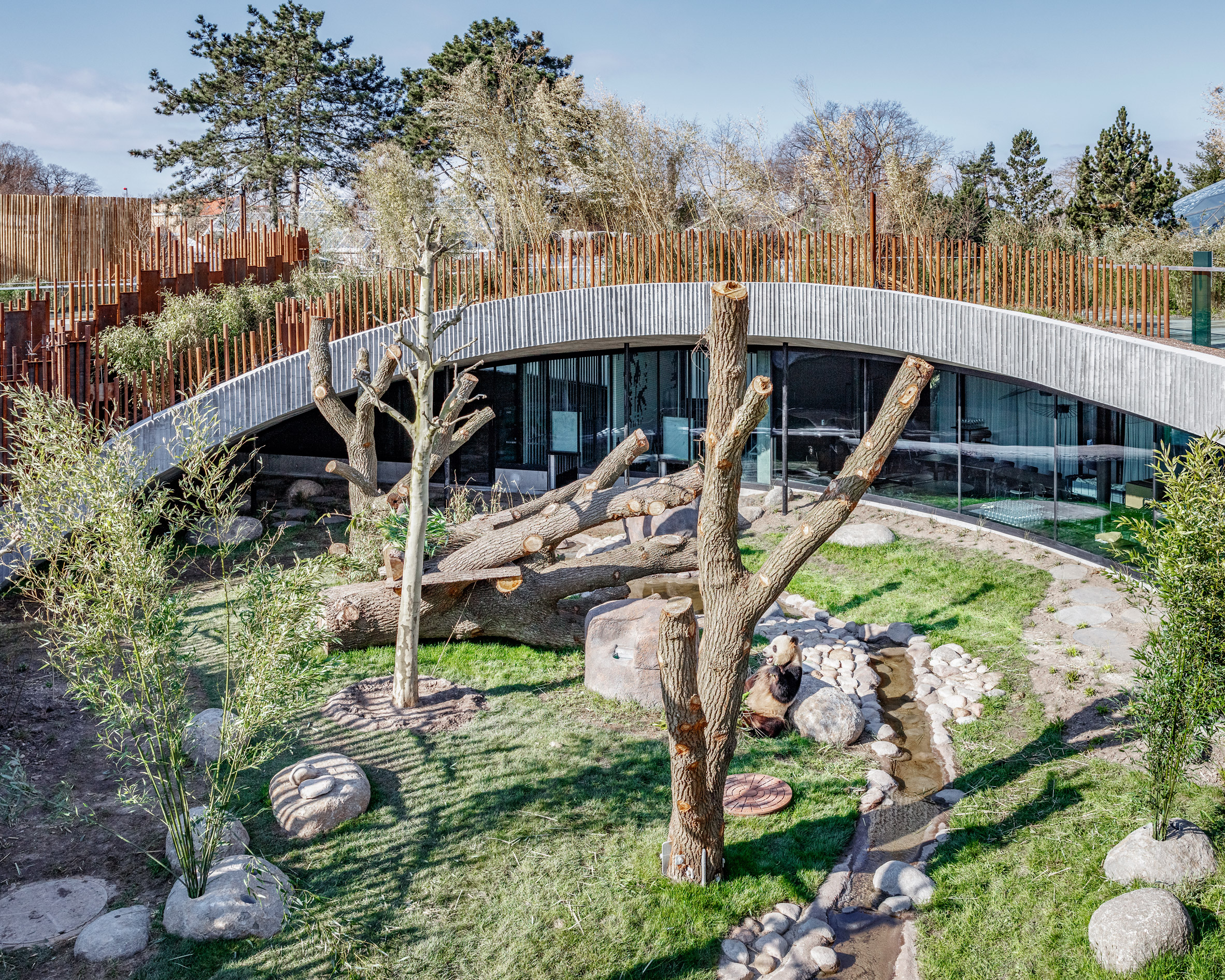 E ndërtuar në zemër të Kopshtit Zoologjik të Kopenhagës, Panda House, është projektuar nga BIG në bashkëpunim me Schønherr Landscape Architects, MOE dhe një numër zoologësh për të imituar një ambient natyror ideal të arinjve.