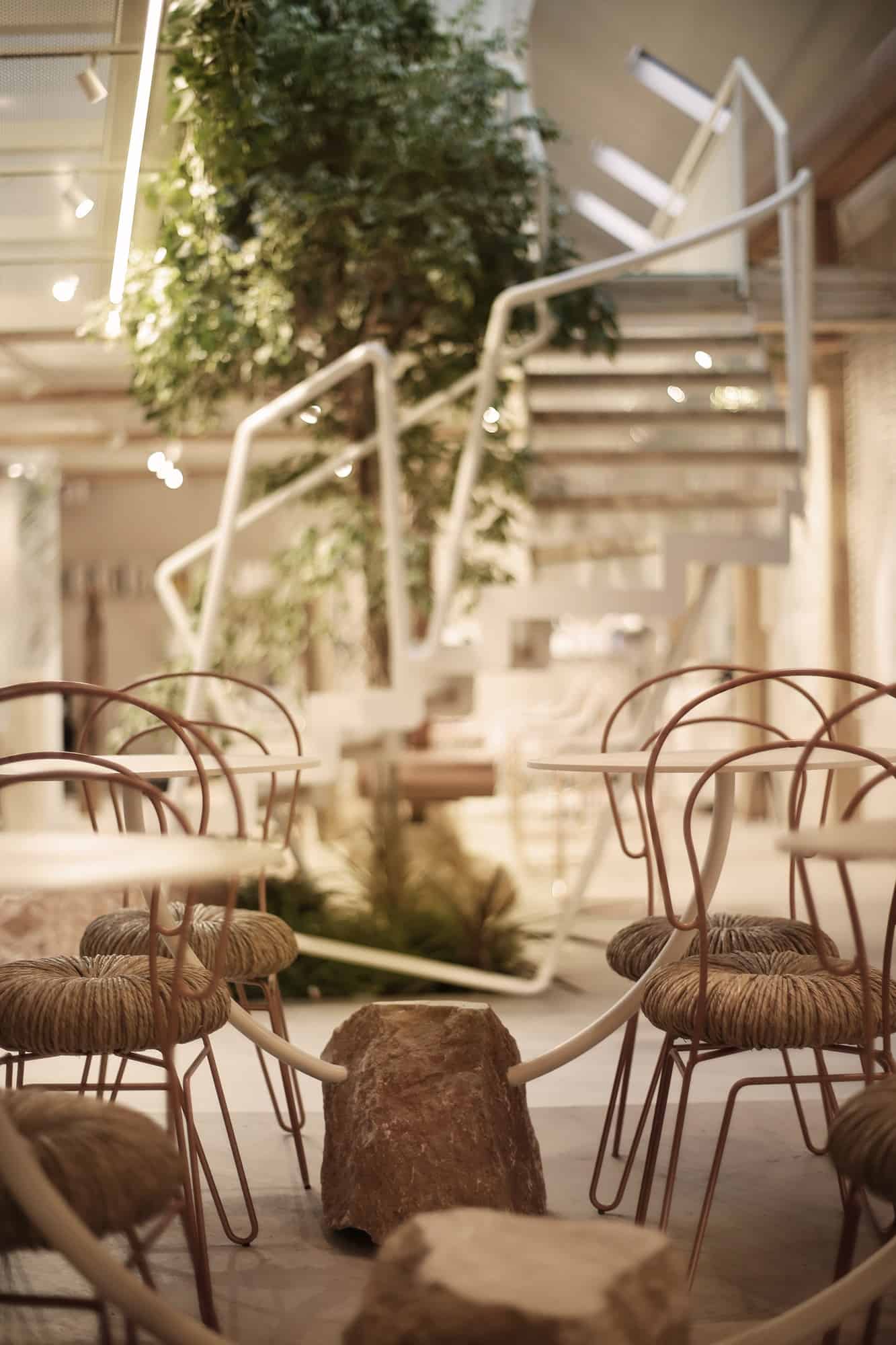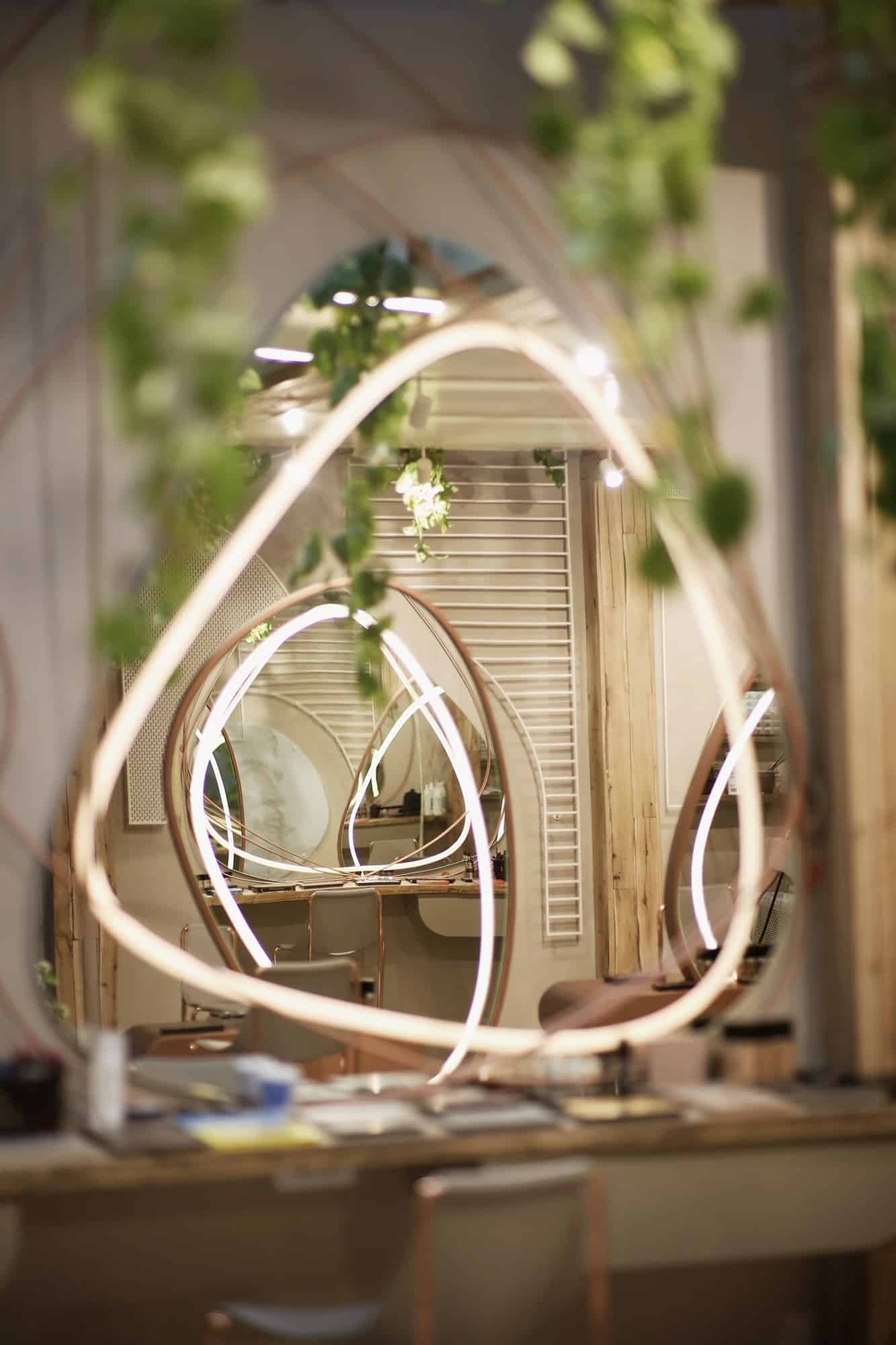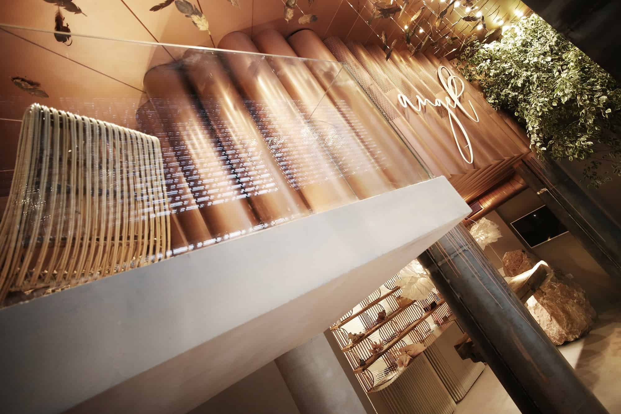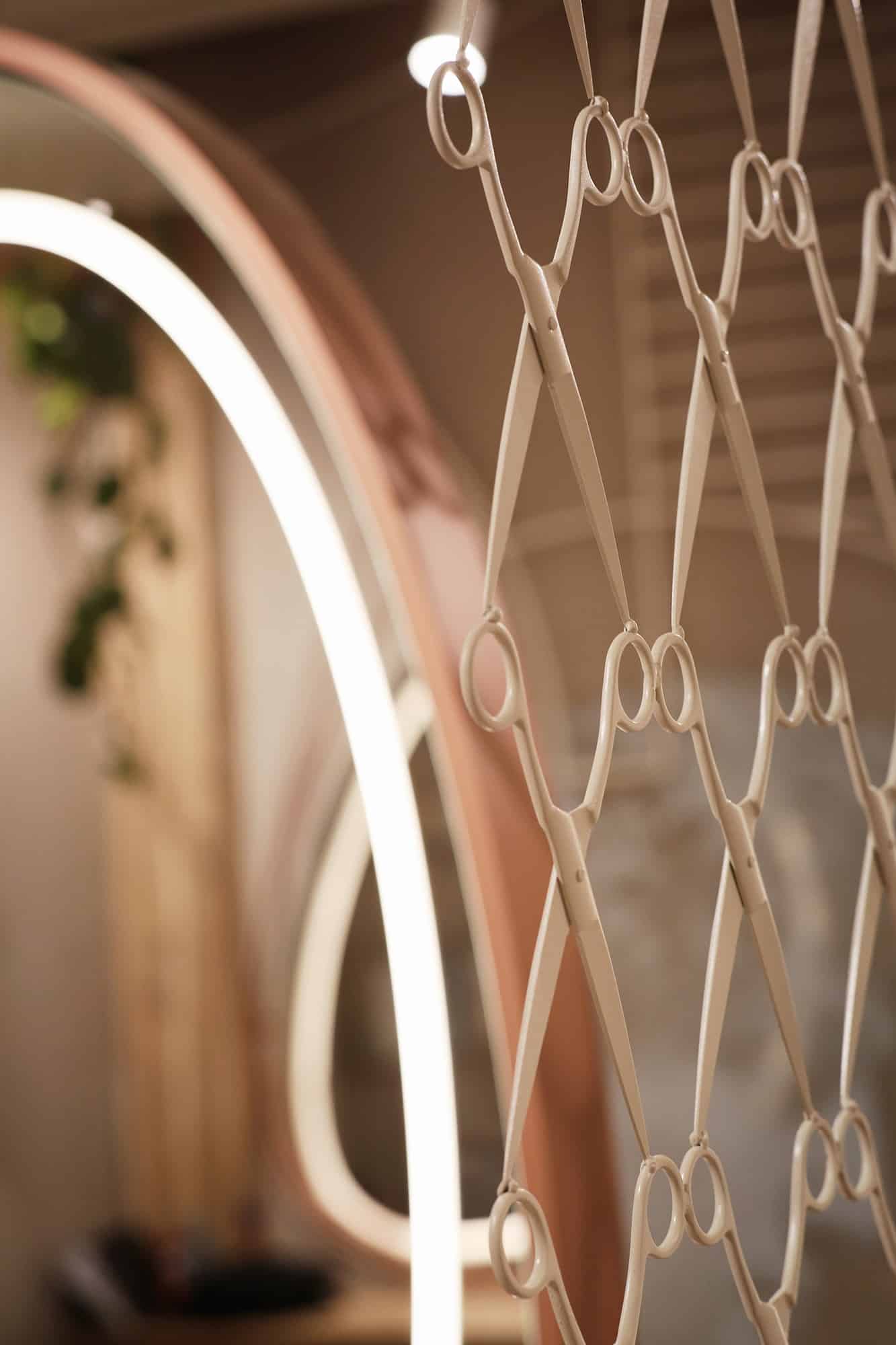 Hapësira e cila i është kushtuar flokëve, është e ndarë nga një “mur” i bërë me porosi nga gërshërë metali me ngjyrë të bardhë. Ndërsa shkallët që ndodhe në këtë hapësirë, janë ndërtuar rreth një peme. Tri shkallët e para janë të krijuara nga një gur natyral ndërsa vazhdimi i tyre është ndërtuar nga druri dhe metali me ngjyrë të bardhë.