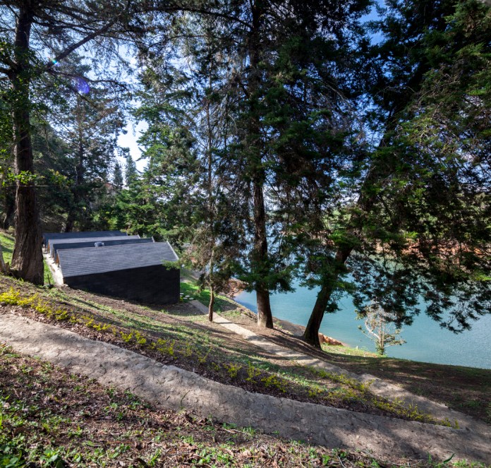 Dizajni i mahnitshëm i shtëpisë pranë liqenit i ndikuar nga forma e tokës