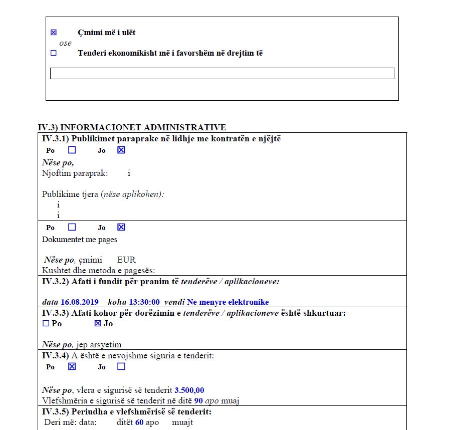 E, për këtë tender të gjithë operatorët ekonomik mund të aplikojnë deri më 16 gusht.
