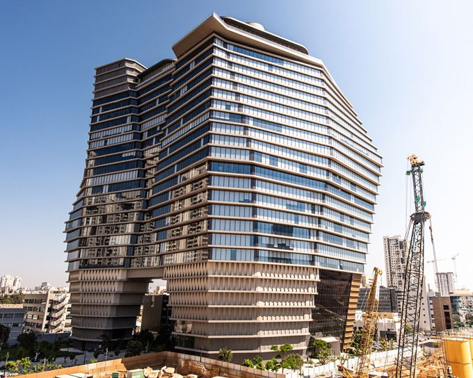 Arkitekti britaniko-izraelit Ron Arad ka përfunduar një kullë zyrash në Tel Aviv të frymëzuar nga një ajsberg, me një fasadë xhami këndore që zgjerohet në mes.