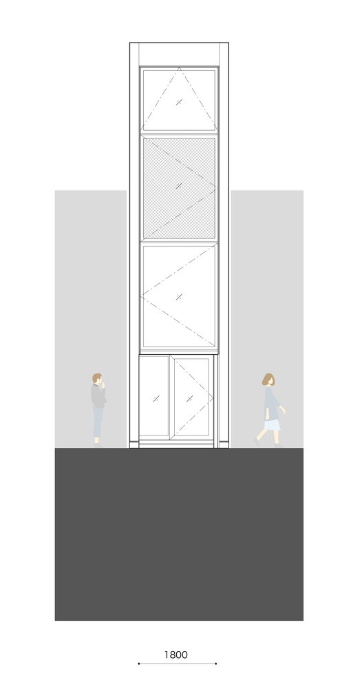 Fasada strukturale me qelq lejon hyren e bollshme të dritës, teksa në anën fundore, ajo pranon dritë edhe nga kulmi përmbi shkallët rrethore.