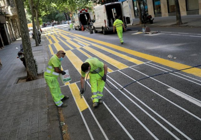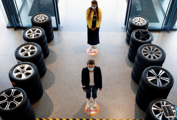 Reuters ka publikuar disa fotografi të hapësirave të punës por edhe hapësirave publike të ri-dizajnuara për të iu përshtatur rregullave të reja.