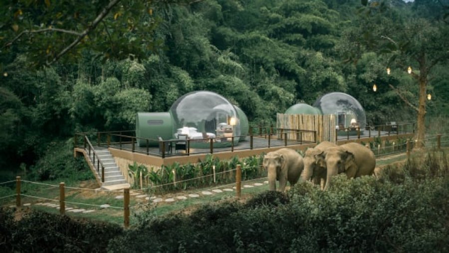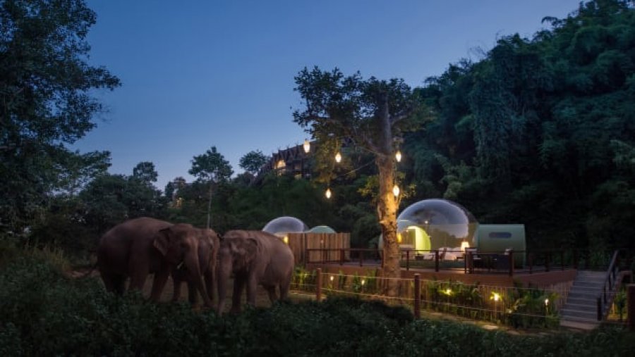 Hoteli mahnitës, dhoma nga xhami të rrethuara me elefantë