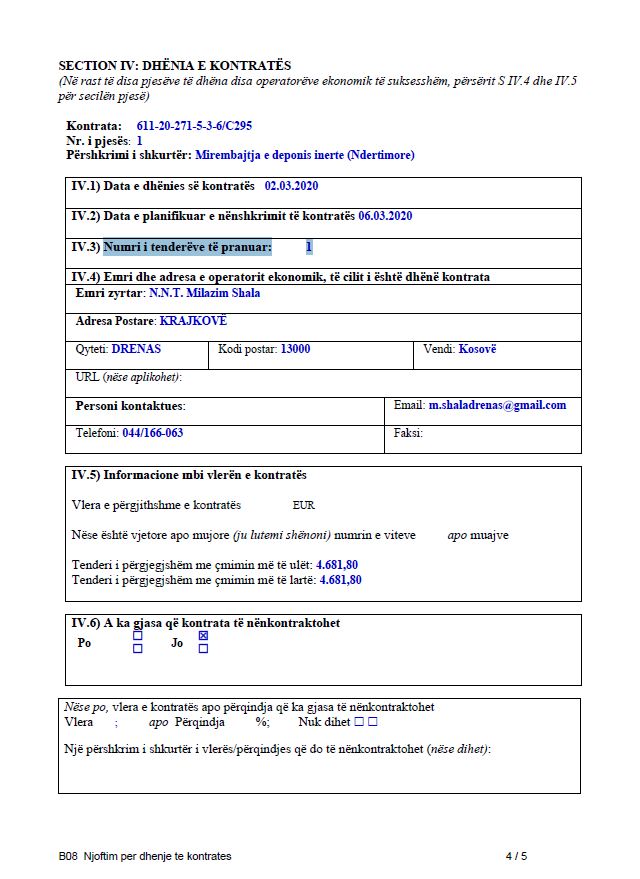 Në vitin 2019, kompania “Geo Map” kishte nënshkruar kontratën me dy llote për ‘hartim të projekteve investive’, në vlerë totale prej 52,729.5 euro. Në atë kohë, Fatbardha Emini, motra e Florent Eminit, i cili është pronar i kompanisë “Geo Map”, ishte drejtoreshë e Arsimit në Komunën e Vitisë, që udhëhiqet nga Sokol Haliti i LDK-së.