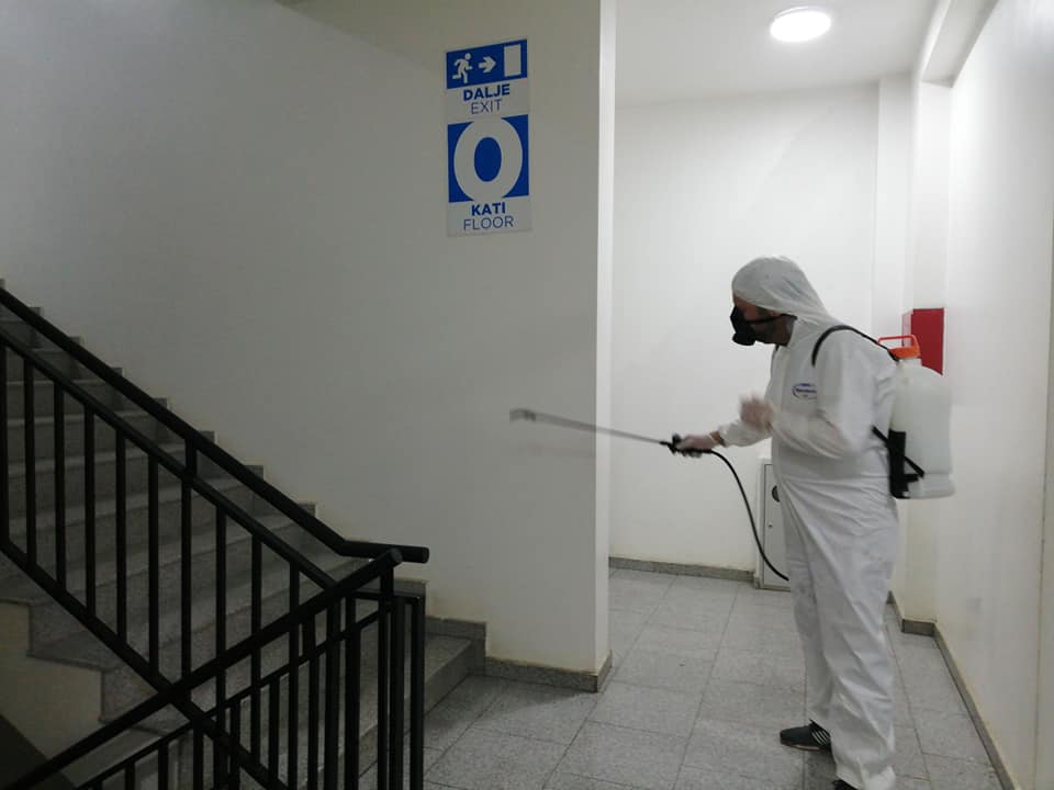KAWA Group mbrëmë pas mesnate ka kryer dezinfektimin dhe dezinsektimin e secilës hyrje, kati dhe ashensori të objekteve banesore: 5 objekteve të kompleksit ‘Çelësi i Prishtinës’ dhe dy hyrjet e kompleksit ‘Hyjnesha’, përfshirë edhe hyrjet e lokaleve.