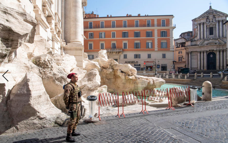 Në një reportazh të agjencisë Ansa tregohen masat e marra për ndalimin e qarkullimit në qendrën turistike të vendit, ku ushtria ruan gjendjen e zbrazëtisë.